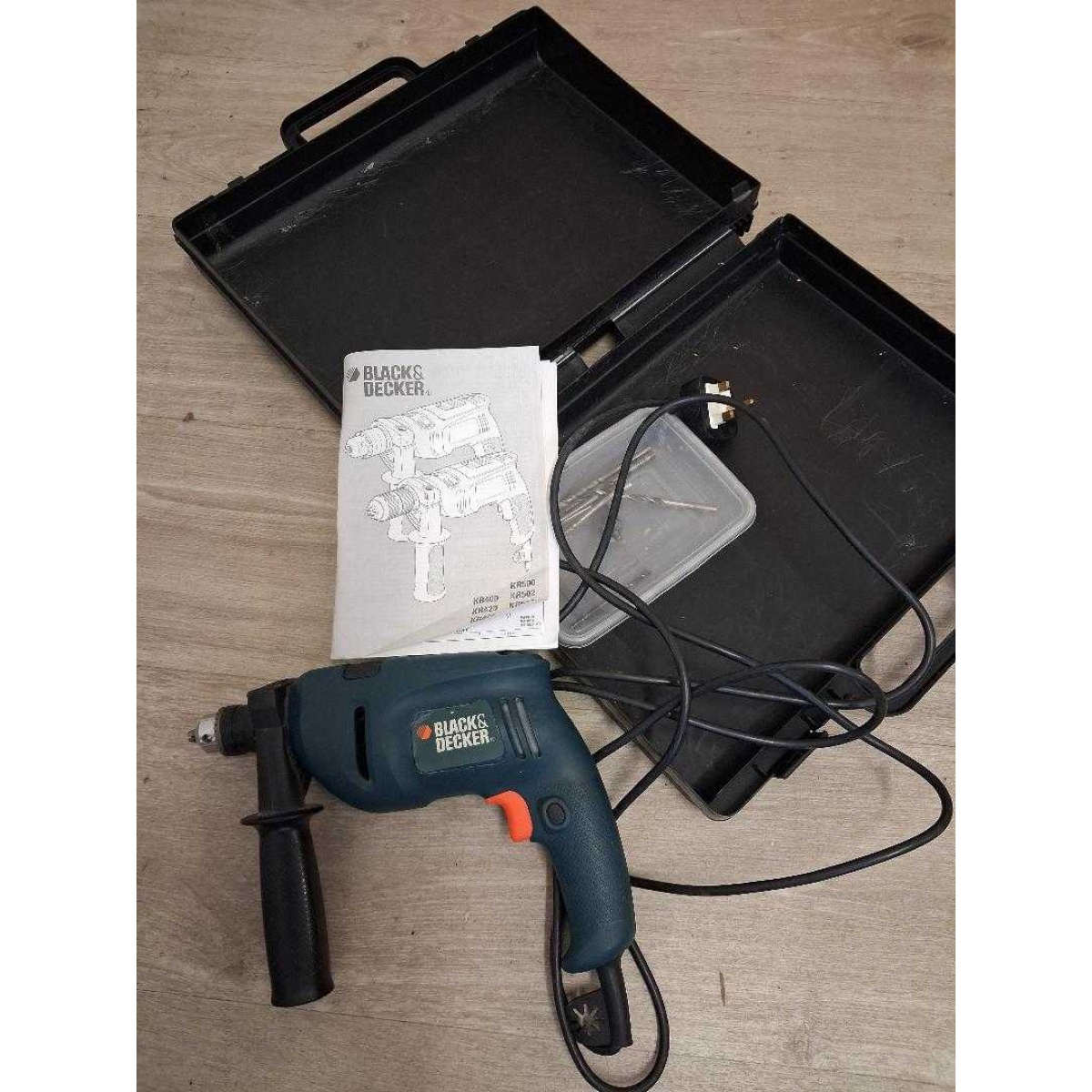 Black & Decker corded electric drill in carry case.