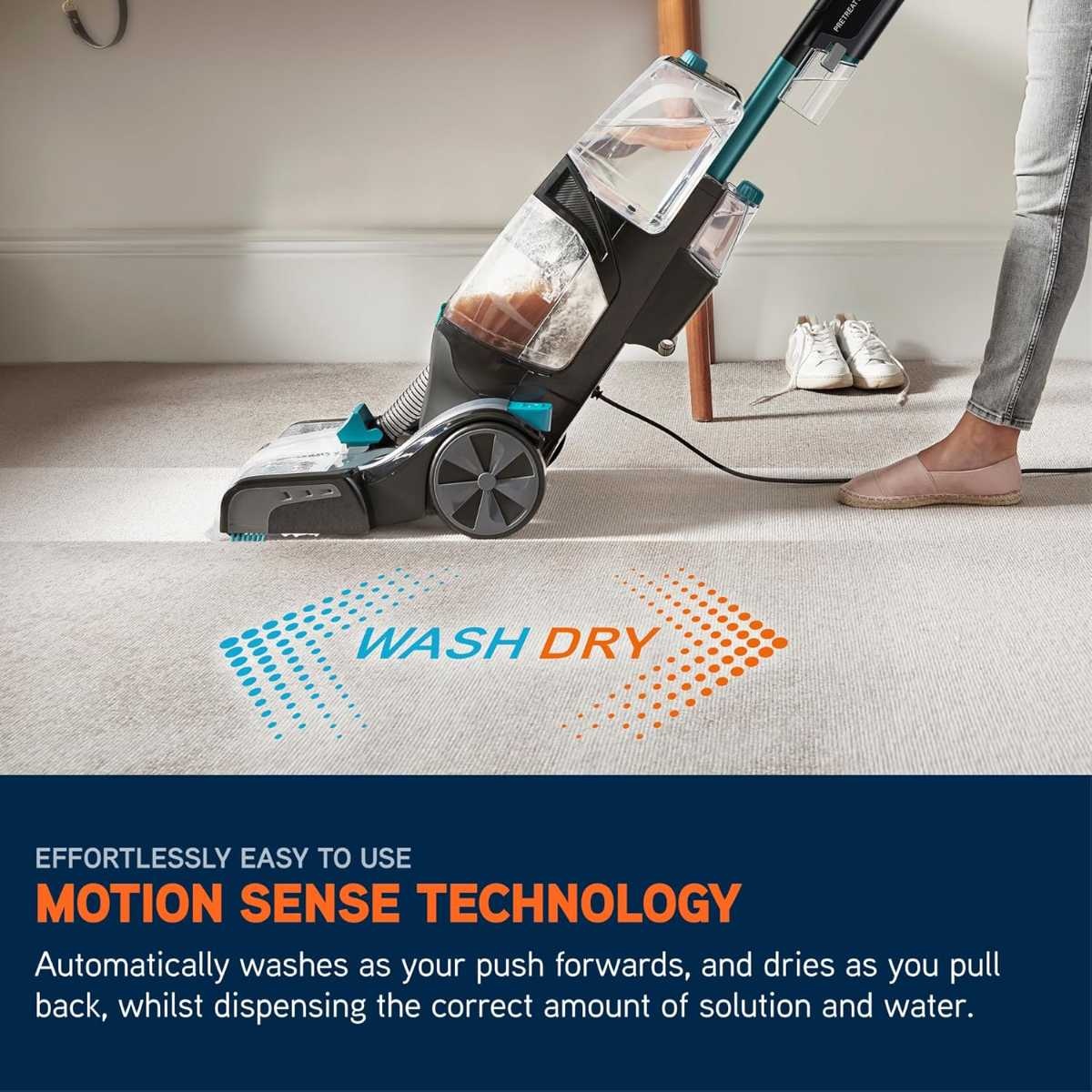 VAX Platinum Smartwash designed for cleaning carpets, including accessories for stain removal. Triggerless design.