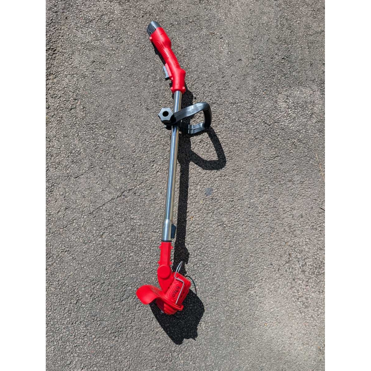 Battery operated hand held strimmer with extra metal blades. Excellent for small areas.