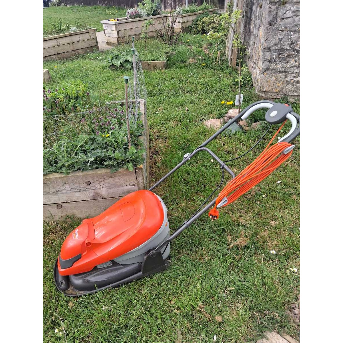 Flymo Easiglide 300 electric hover lawnmower.